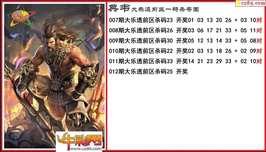 大乐透012期典韦前区一码杀号图